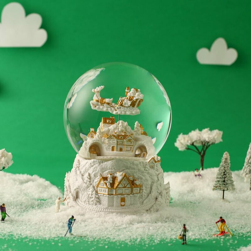 幸福的雪白聖誕(灯光) 水晶球音乐盒